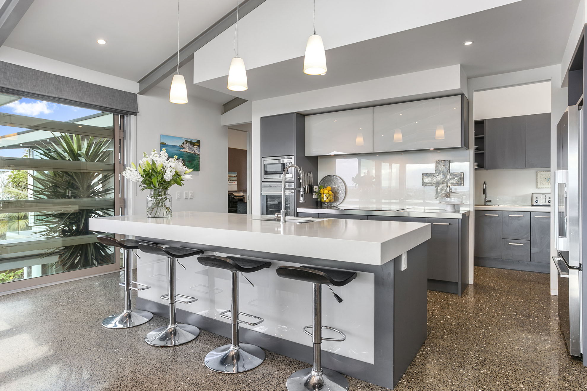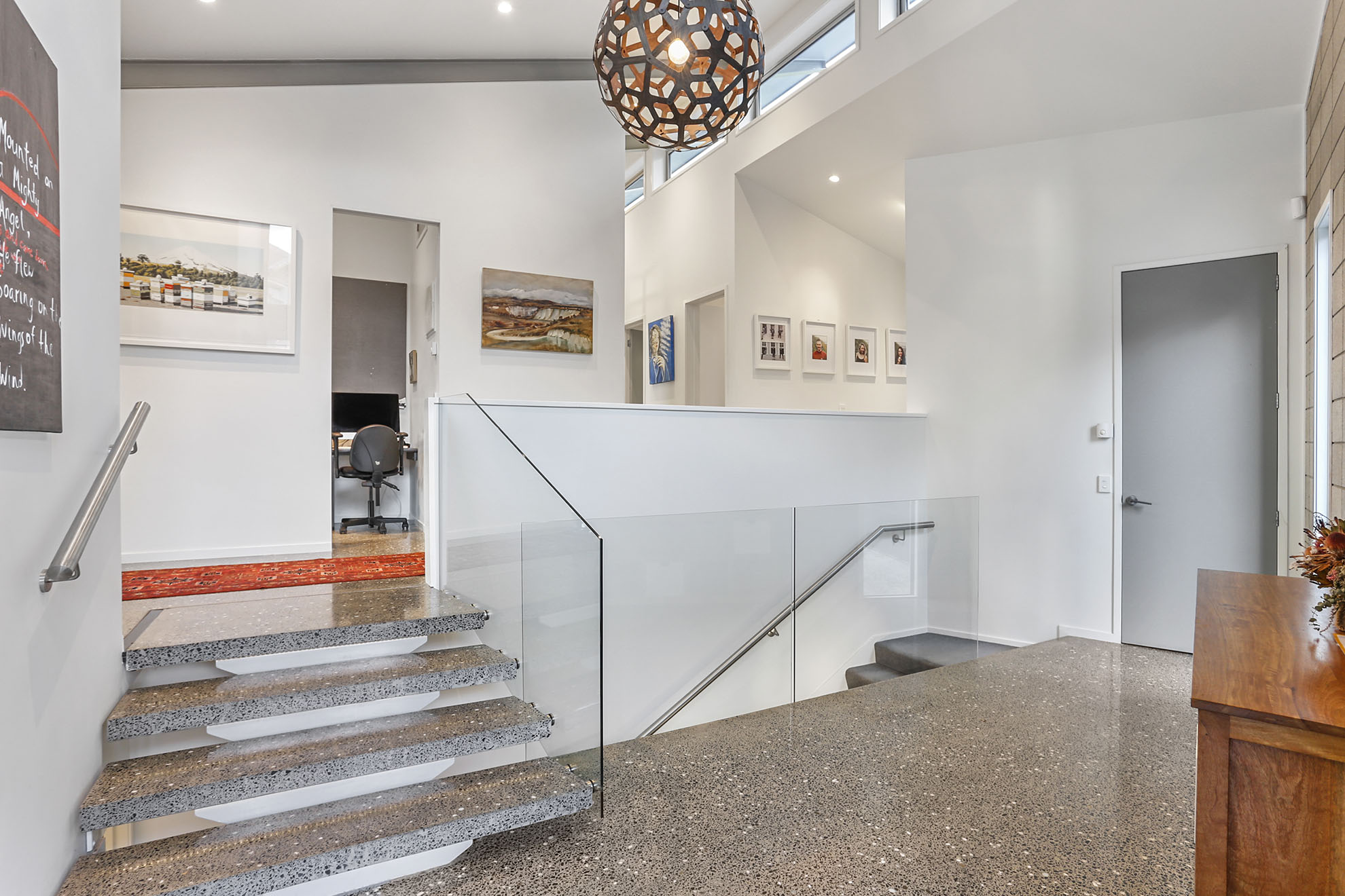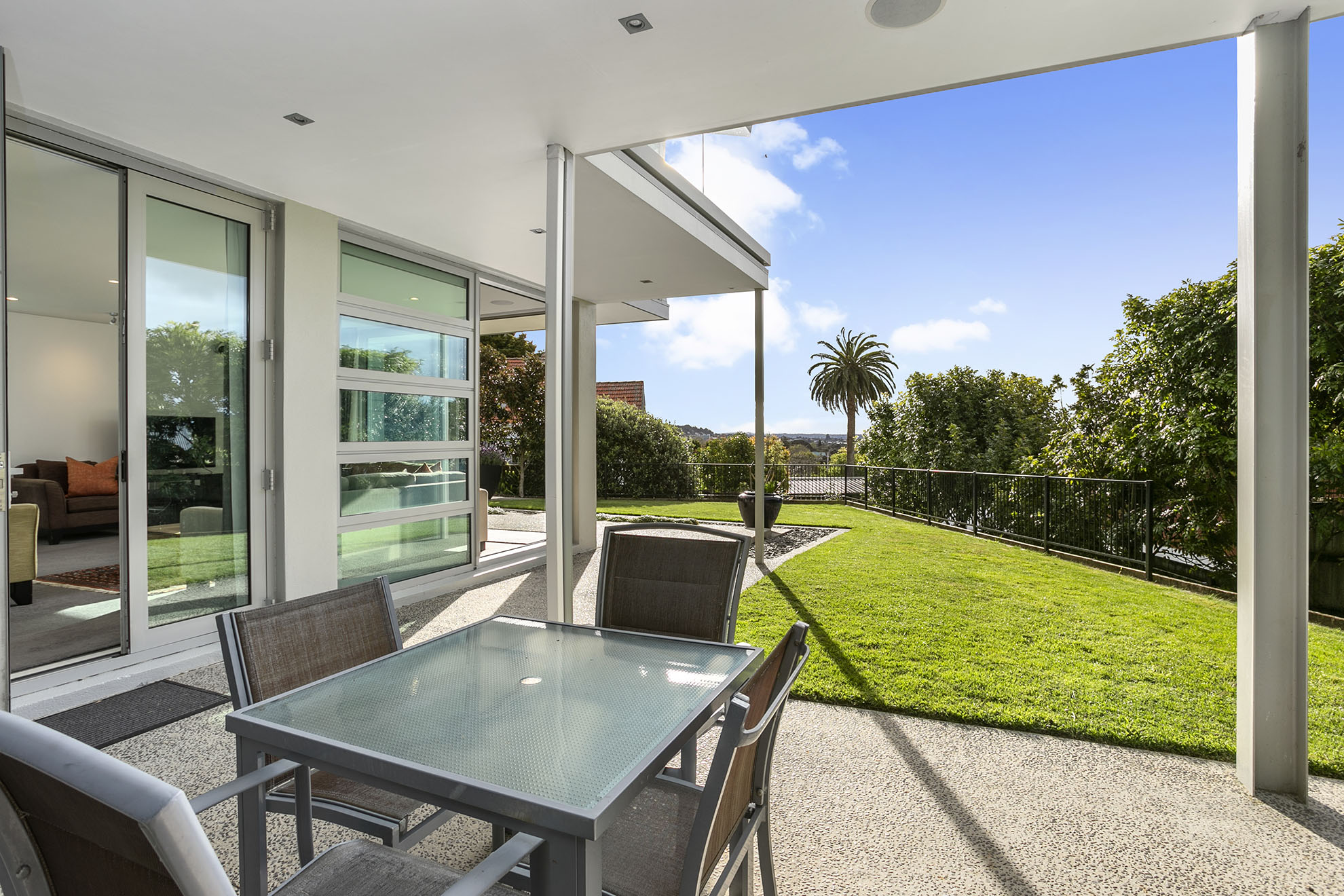The house was designed on two levels, with the lower level being a self contained two bedroom apartment. The larger open plan living area on the top floor opens on to a covered outdoor space. We incorporated the use of exposed steel structure throughout the house.